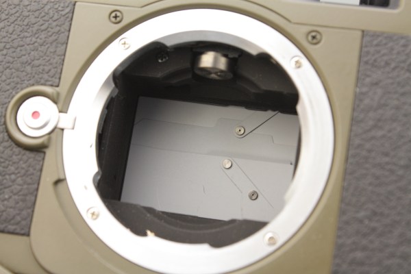 - Built in light meter designed like the Leica M6 meter, 2 arrows at the base and a central spot for ‘correct’ exposure