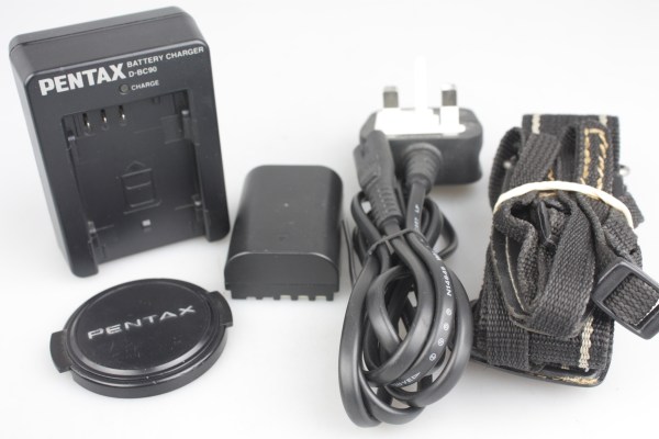 - Comes with Pentax charger, mains lead, strap, lens cap, & case