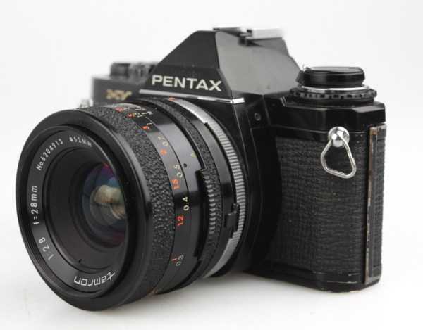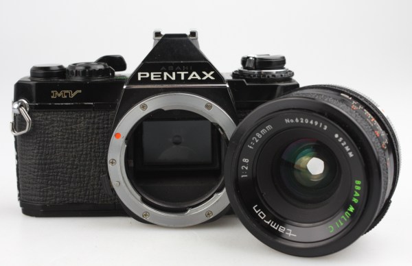 - Well used condition Pentax MV with a 28mm wide angle prime lens