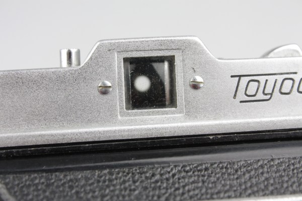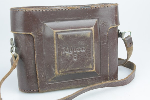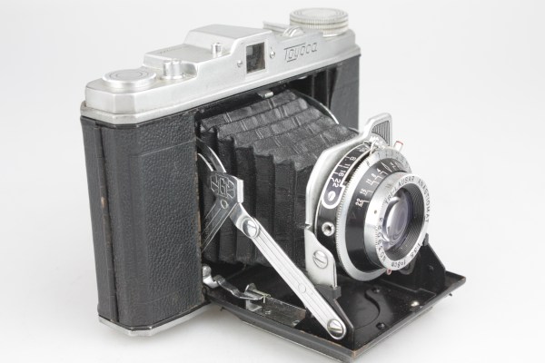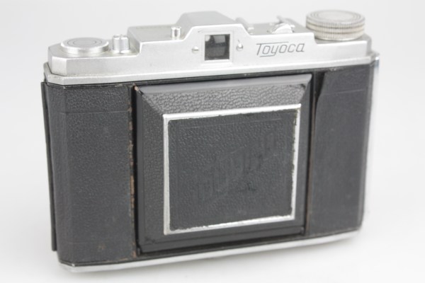 One source says that the Toyoca Six was released in 1956 as a single format camera, taking 6×6cm pictures only, but this has not been confirmed yet.The only period document known so far is a column in the Summer 1957 special issue of Shashin Kōgyō on Japanese cameras, where the Toyoca Six is attributed to Tōgōdō Kōki and priced at ¥6,500.This document mentions the dual-format ability and says that the shutter is a CHY-FS (B, 1–200) with X synchronization.The Toyoca Six is very uncommon today, and only three surviving examples have been observed so far. One of them is owned by the Pentax Gallery. It has a round lens standard and a leatherette patch on the film flange at the top right. Its shutter is a CHY-SB shutter (B, 1–200), engraved CHY–SB at the bottom of the speed rim. Its aperture scale, at the top of the shutter casing, is metal finished.The other two examples have an angled lens standard, with a decorated protrusion behind the synch socket. They also have concentric rings on the film flange instead of a leatherette patch. These features are the same as on the illustration of the Summer 1957 article mentioned above. (The front standard is also similar to that found on some advertisements for the 1953 Beauty Six.) The two cameras have no marking on the shutter, and have a black aperture scale at the top. One has B, 1–200 speeds and the other has B, 1–300.